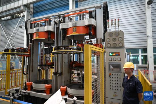 位于揭阳的巨轮智能装备股份有限公司的液压式轮胎硫化机(6月29日摄)。