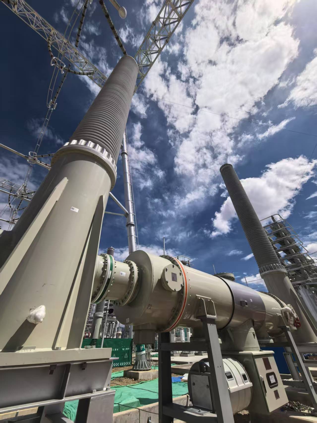 在世界屋脊的见证下,2025年8月3日,海拔3720米的±400千伏卡麦换流站内,试验电压平稳归零,现场掌声雷动,由西开电气负责生产安装的550kVGCB设备,一次性成功通过严苛的740kV耐压试验!这标志着国家“西电东送”战略骨干工程——金上-湖北±800千伏特高压直流输电工程,在其世界海拔最高的关键站点,取得了里程碑式的胜利,为后续系统调试和最终投运奠定了坚实基础。