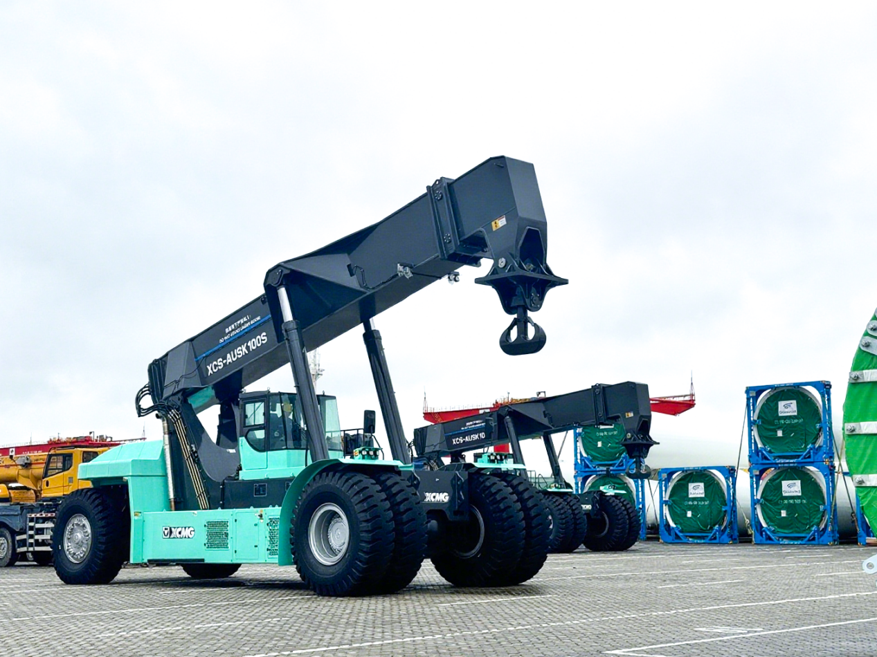 徐工XCS100S风电专用正面吊如“破壁者”应时而生,以三大“杀手锏”横扫痛点:百吨巨力稳擎庞然大物,毫米级定位精度、多场景稳定输出无惧港口风浪。