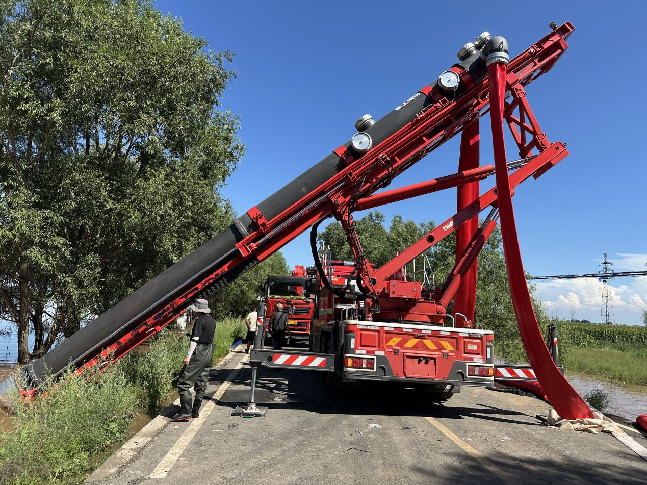 作为救援现场唯一一台大流量排水车,为了保障变电站正常运转,徐工GP50C近10小时连轴工作。