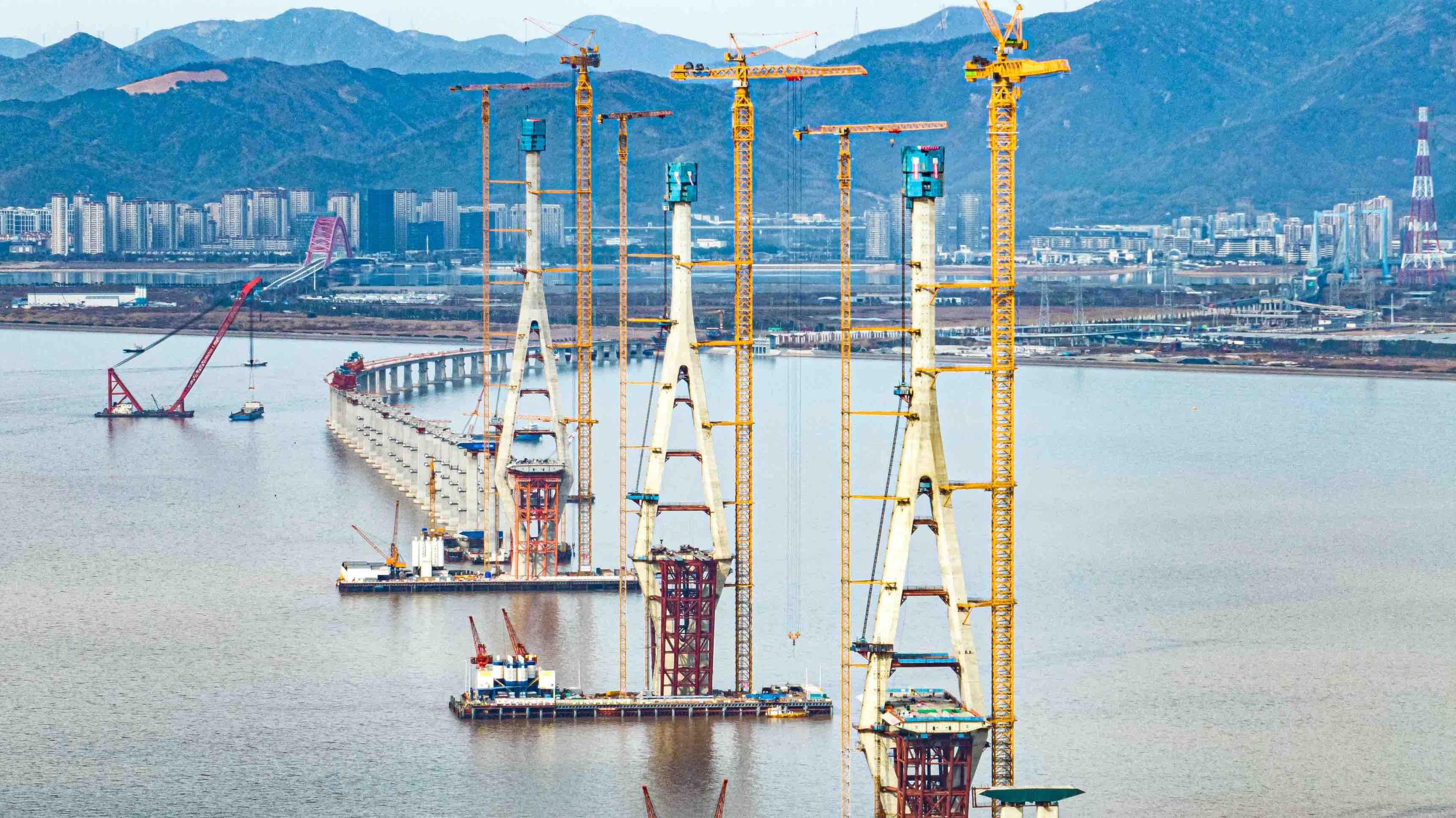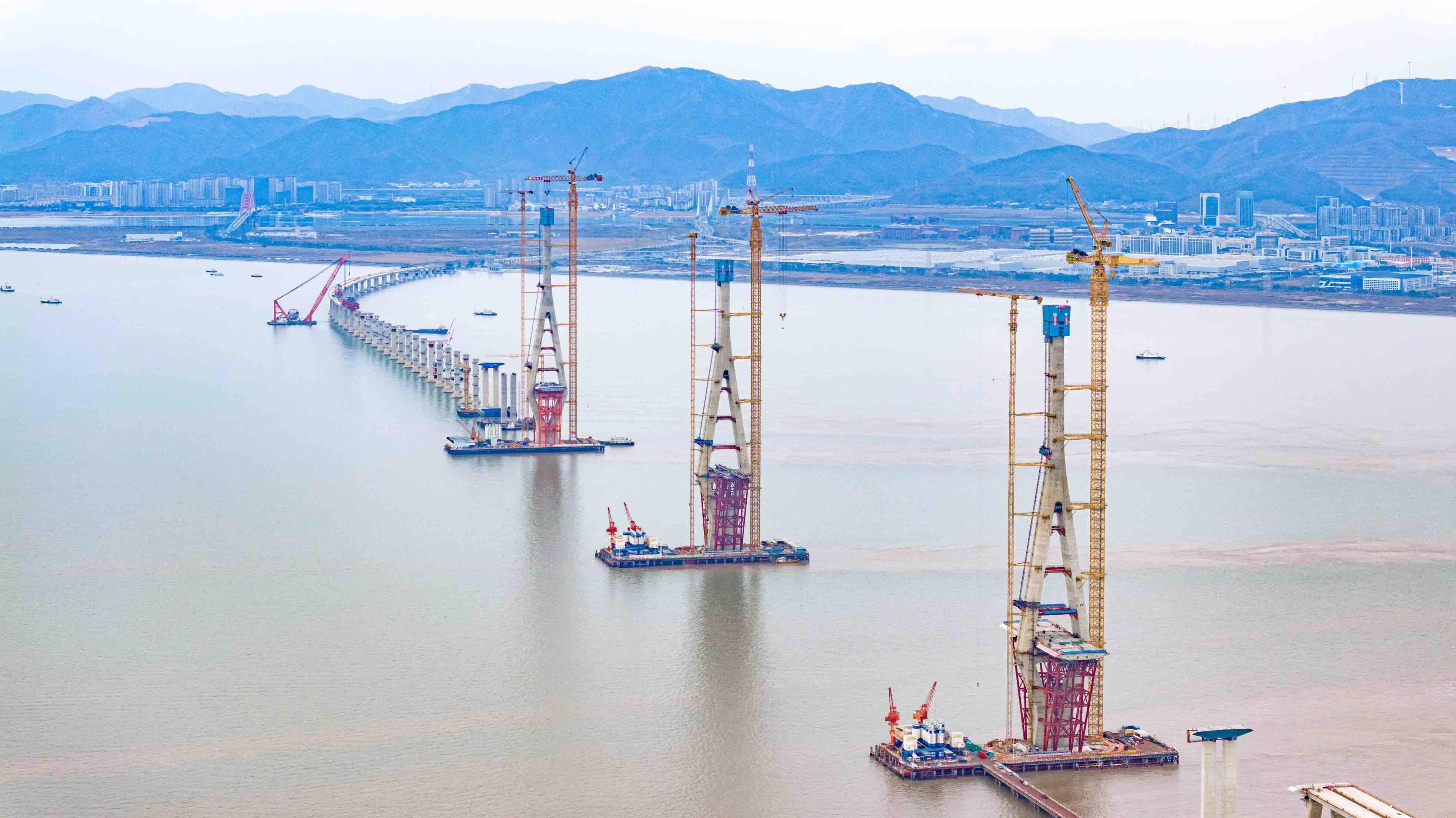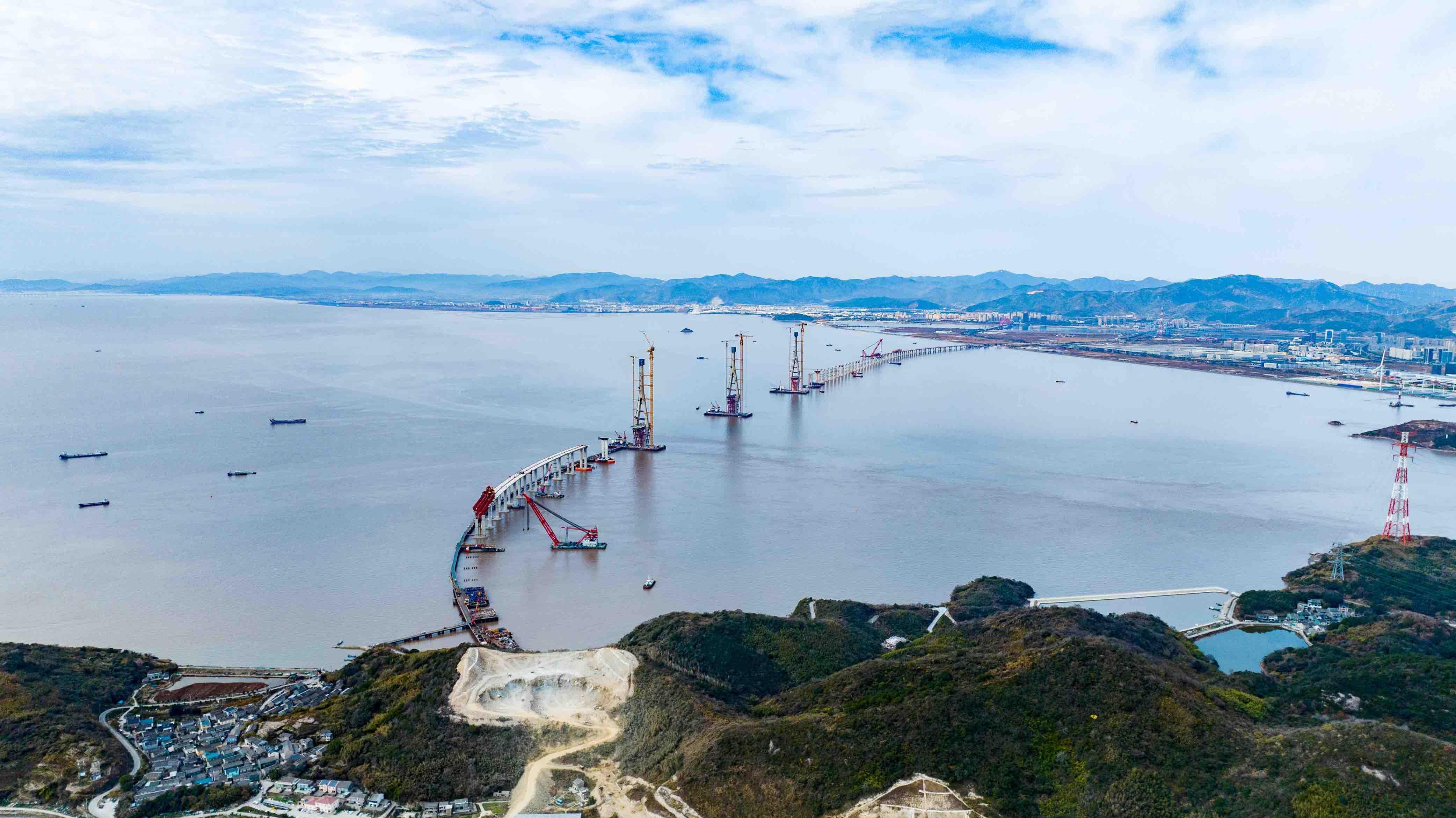 12月24日,由中国铁建大桥局、中国铁建港航局联合承建的宁波舟山港六横公路大桥二期工程——青龙门特大桥双主塔成功封顶,标志着世界最大跨度三塔钢箱梁斜拉桥建设取得关键性突破,大桥建设从“立塔成型”迈入“斜拉成桥”关键阶段,为2027年全线贯通奠定坚实基础。