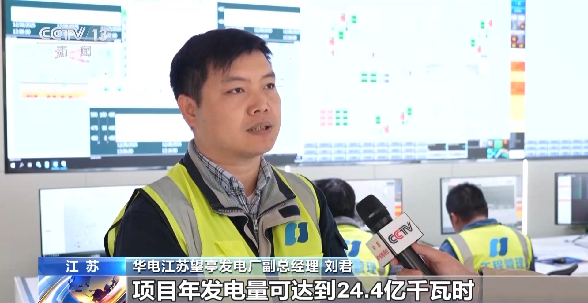 华电江苏望亭发电厂副总经理刘君:5号机组投产后,项目年发电量可达到24.4亿千瓦时,能满足230万居民一年用电需求,每年可节约标煤20万吨,减排二氧化碳约90万吨。为江苏地区今冬明春电力保供提供清洁能源保障。