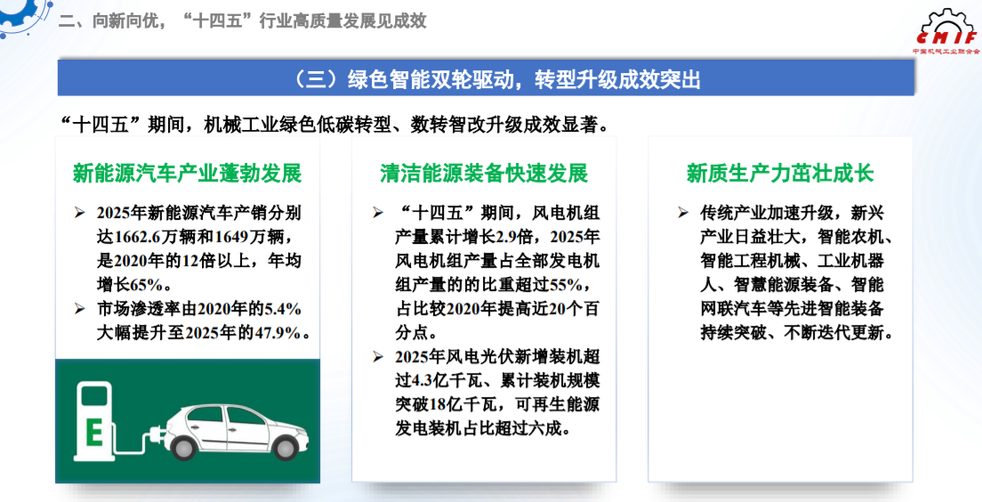 “十四五”期间,机械工业绿色低碳转型、数转智改升级成效显著。