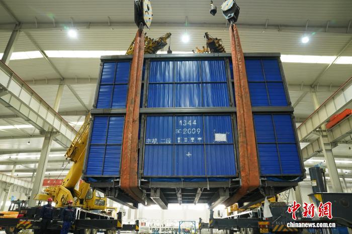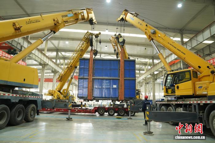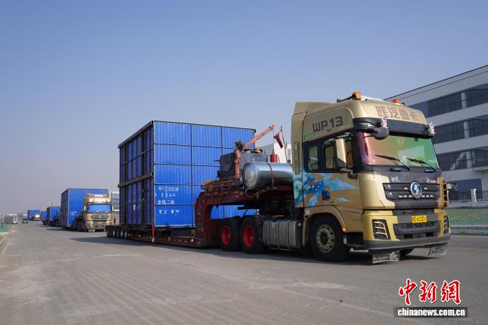 2月9日,由河北省秦皇岛经济技术开发区一家高新技术企业研发的电磁加热多层层压机完成总装调试,发往海外。该设备整机外观长25.5米、宽4米、高4.15米,产品从研发到制作完成历时3年。此次出海的电磁加热多层层压机,突破了电磁感应加热、多层同步控温、立体堆栈式结构等关键技术,实现了加热方式与生产模式的双重革新。图为电磁加热多层层压机设备准备启运发往海外。王继军摄