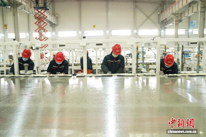 图为技术人员在组装电磁加热多层层压机加热板部件。王继军摄