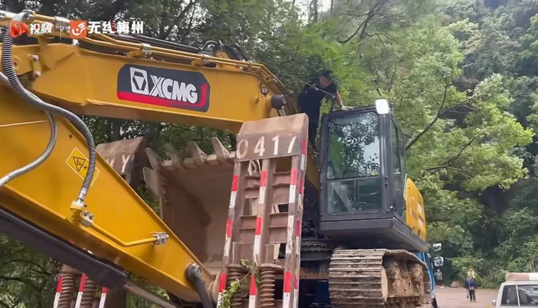 梅州泗水镇、东石镇多处道路受洪水影响严重,出现坍塌和滑坡,无法正常通行,徐工挖掘机开展道路抢通和滑坡处理,清理修复损毁路面