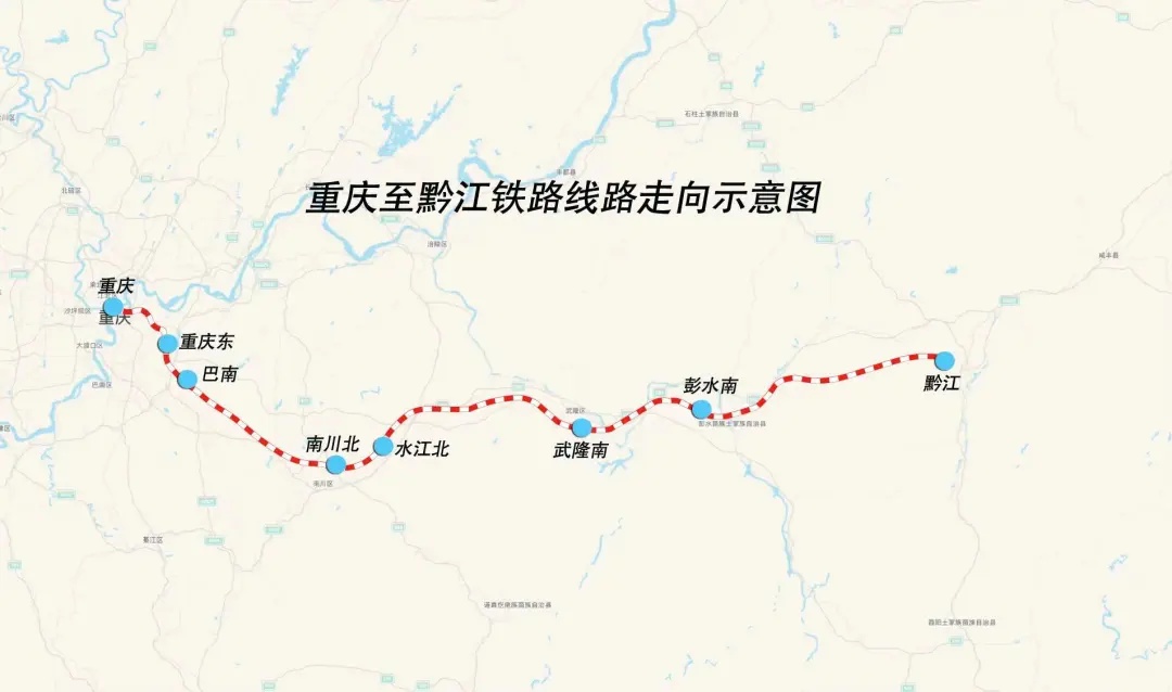 全线设重庆、重庆东、巴南、南川北、水江北、武隆南、彭水南、黔江站8个站