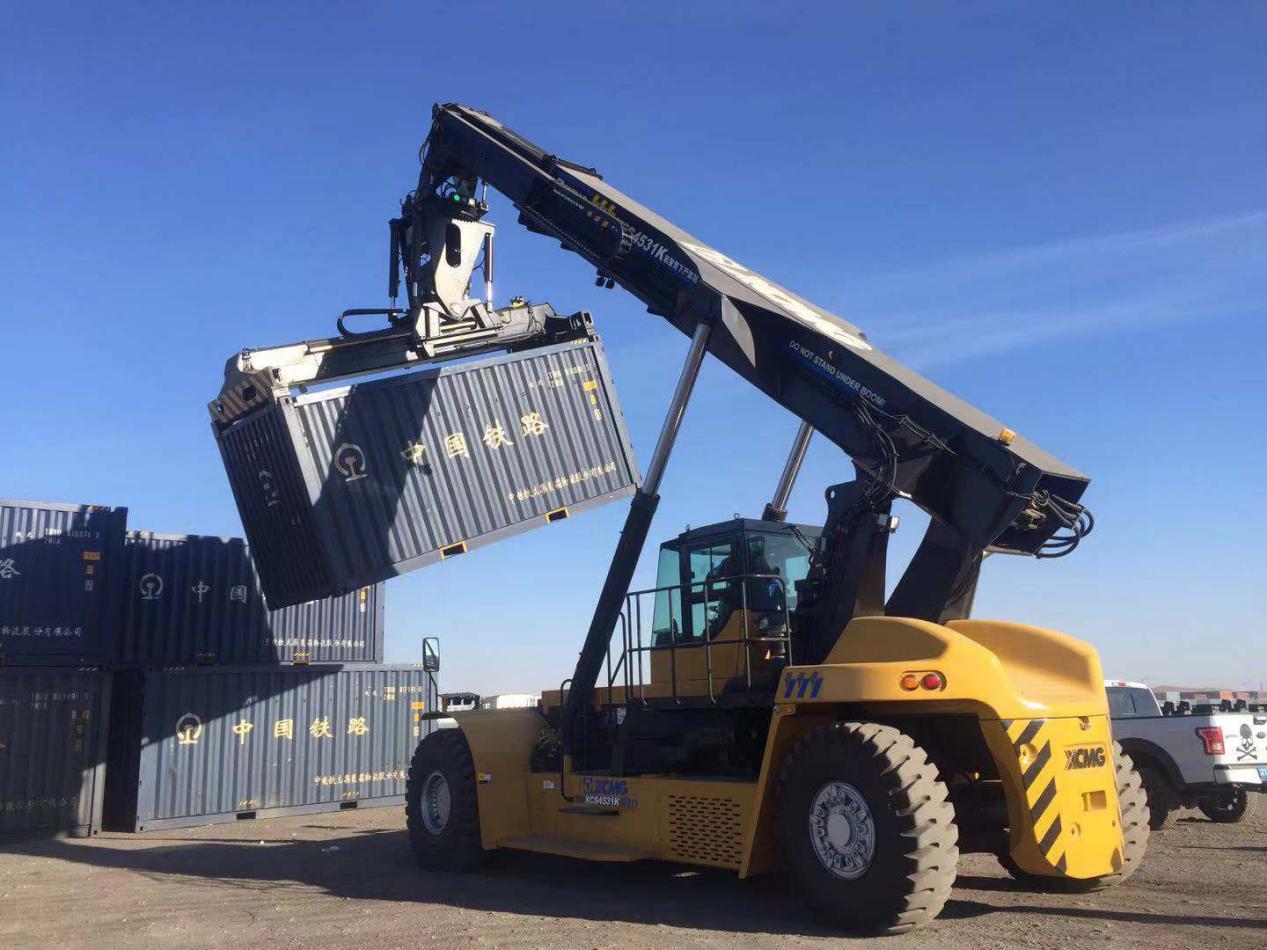 近日,在我国最大的公路口岸——甘其毛都口岸货场,徐工XCS4531K正面吊批量交付