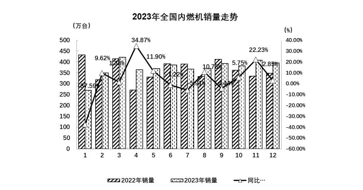 近日中国内燃机工业协会最新数据显示,2023年12月内燃机行业销量环比小幅下降、同比增长,全年销量较上年比小幅增长。