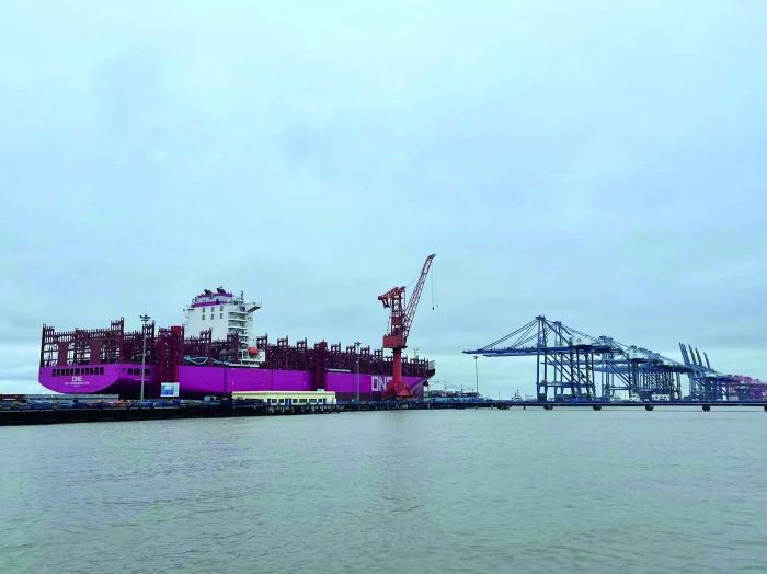 “7000箱集装箱船是外高桥造船的主流产品,在交付前,船东通常已经排好了第一个班次的船期