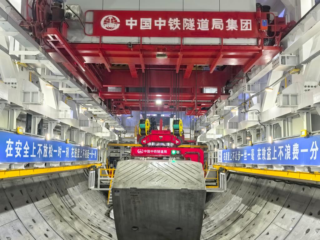 (受访者供图)崇太长江隧道盾构段采用“领航号”盾构机掘进施工,盾构机刀盘直径15.4米,是目前世界最大直径高铁盾构机