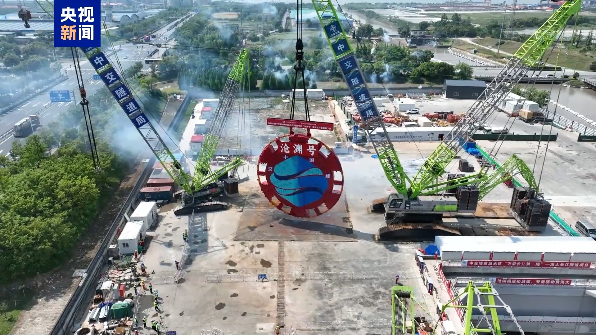 重达481.5吨 国产超大直径盾构机“沧渊号”刀盘成功下井