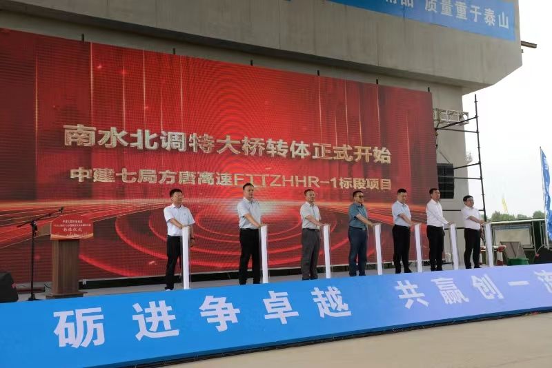 河南方城:方唐高速跨越南水北调特大桥成功转体