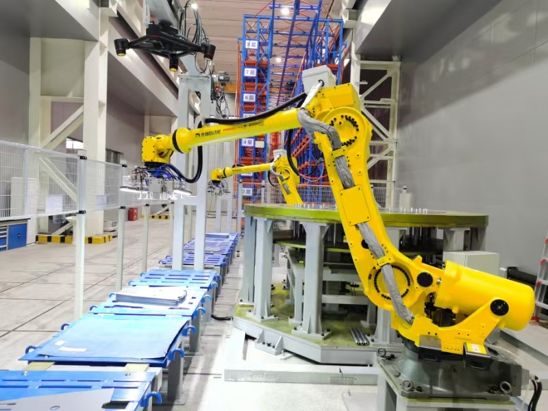 在电机公司冲剪数字化车间内,一批明黄色机身的机器人精准地执行着各项任务,像是一群训练有素的“钢铁战士”。