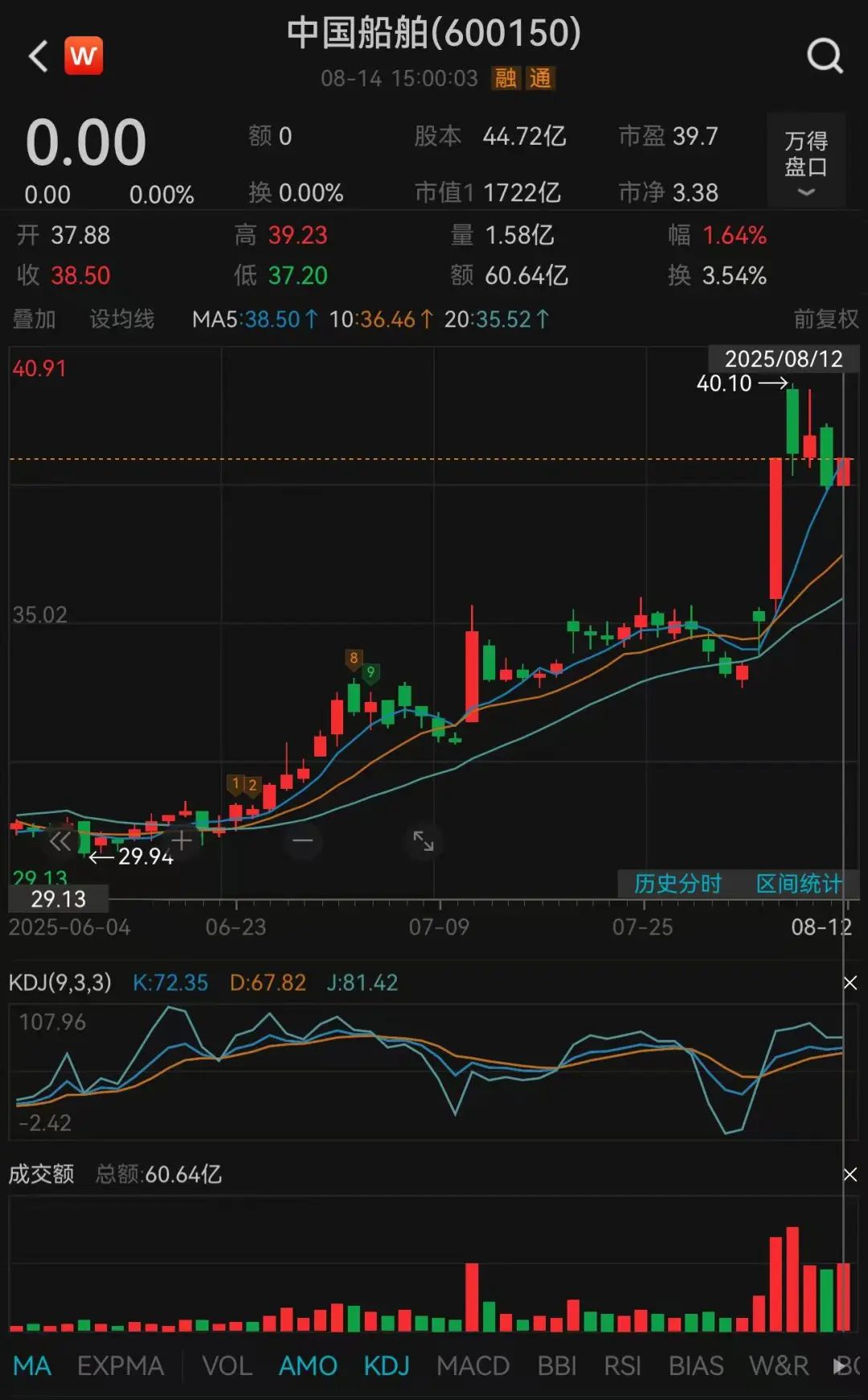 中国船舶提示,此次异议股东收购请求权申报尚余最后一个交易日,申报时间为8月15日的9:30—11:30、13:00—15:00。