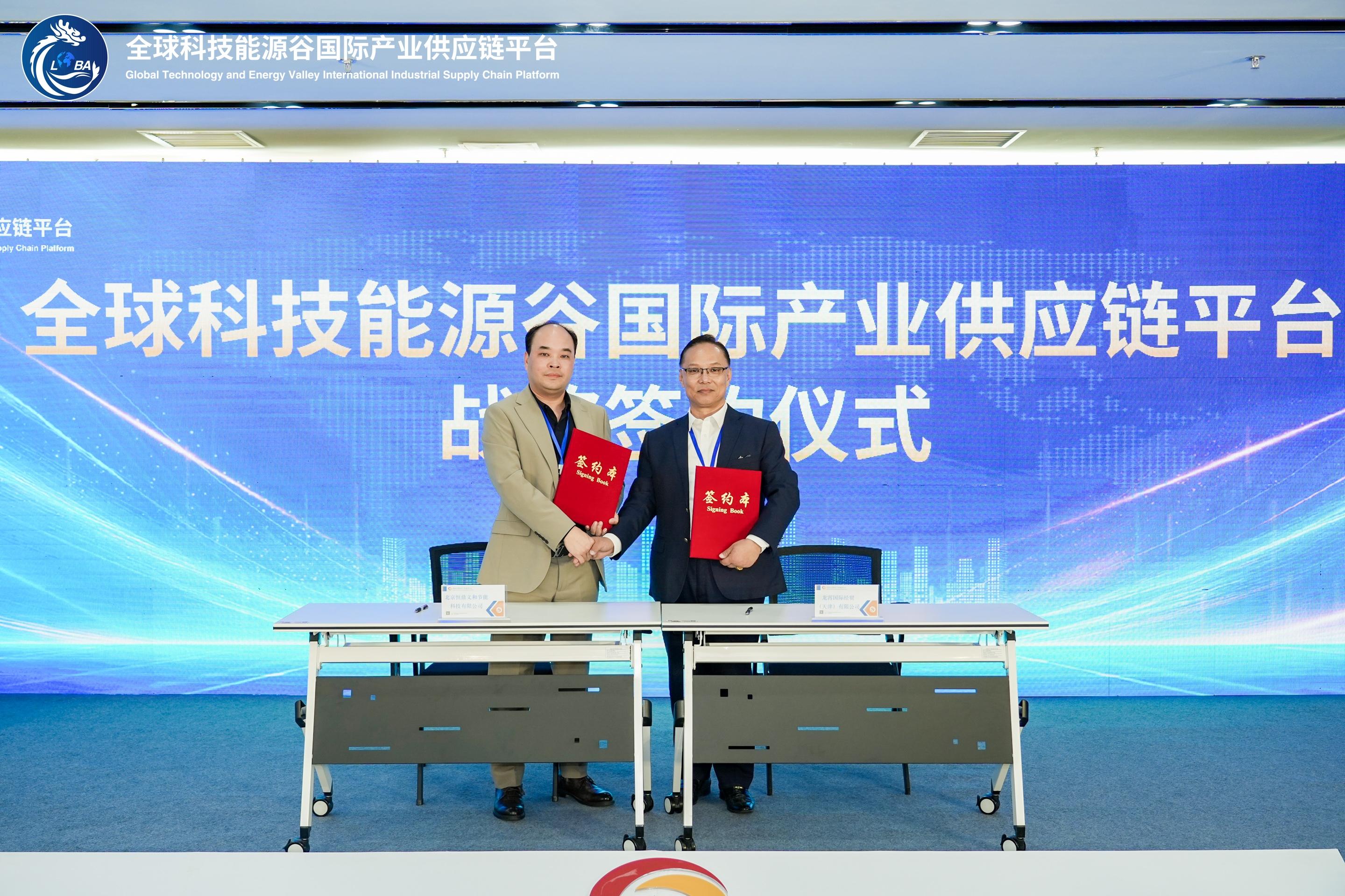 在下午的议程中,平台推动多项务实合作落地,并与多家优质企业完成现场签约。作为全球科技能源谷国际产业供应链平台的核心企业,龙霄国际经贸(天津)有限公司分别与海南独角兽出海上市孵化中心、北京恒鼎义和节能科技有限公司、北京卡贝隆家具有限公司完成签约。