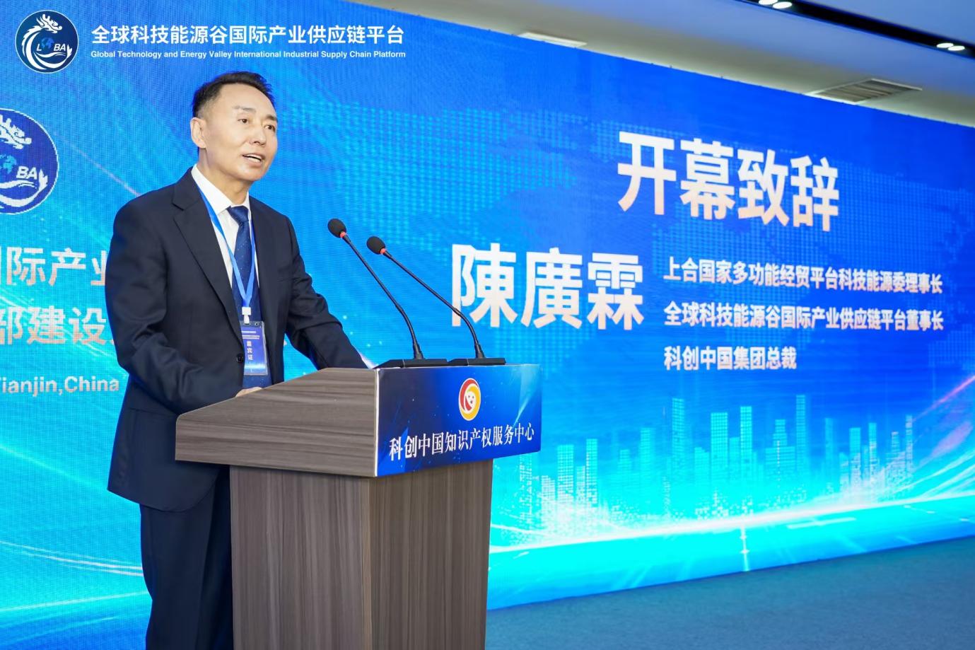 会议伊始,上海合作组织国家多功能经贸平台科技能源产业发展工作委员会理事长、全球科技能源谷国际产业供应链平台董事长、科创中国集团总裁陈广林致欢迎辞。他在致辞中指出,共建“一带一路”倡议已从宏伟蓝图发展为生动实践,推动全球发展迈向新高度。他强调,建设海南国际出海总部,不仅要依托海南自贸港的政策与区位优势打造有形枢纽,更要以无形资产管理为核心,构建“无形赋能有形、知识驱动贸易”的出海新生态,践行“用梦想服务世界,让世界读懂中国”的理念,推动中国企业在全球化进程中实现“资产有形化、价值全球化”。陈广林的发言高屋建瓴,展现了平台在国际合作与产业出海领域的引领作用与战略视野。
