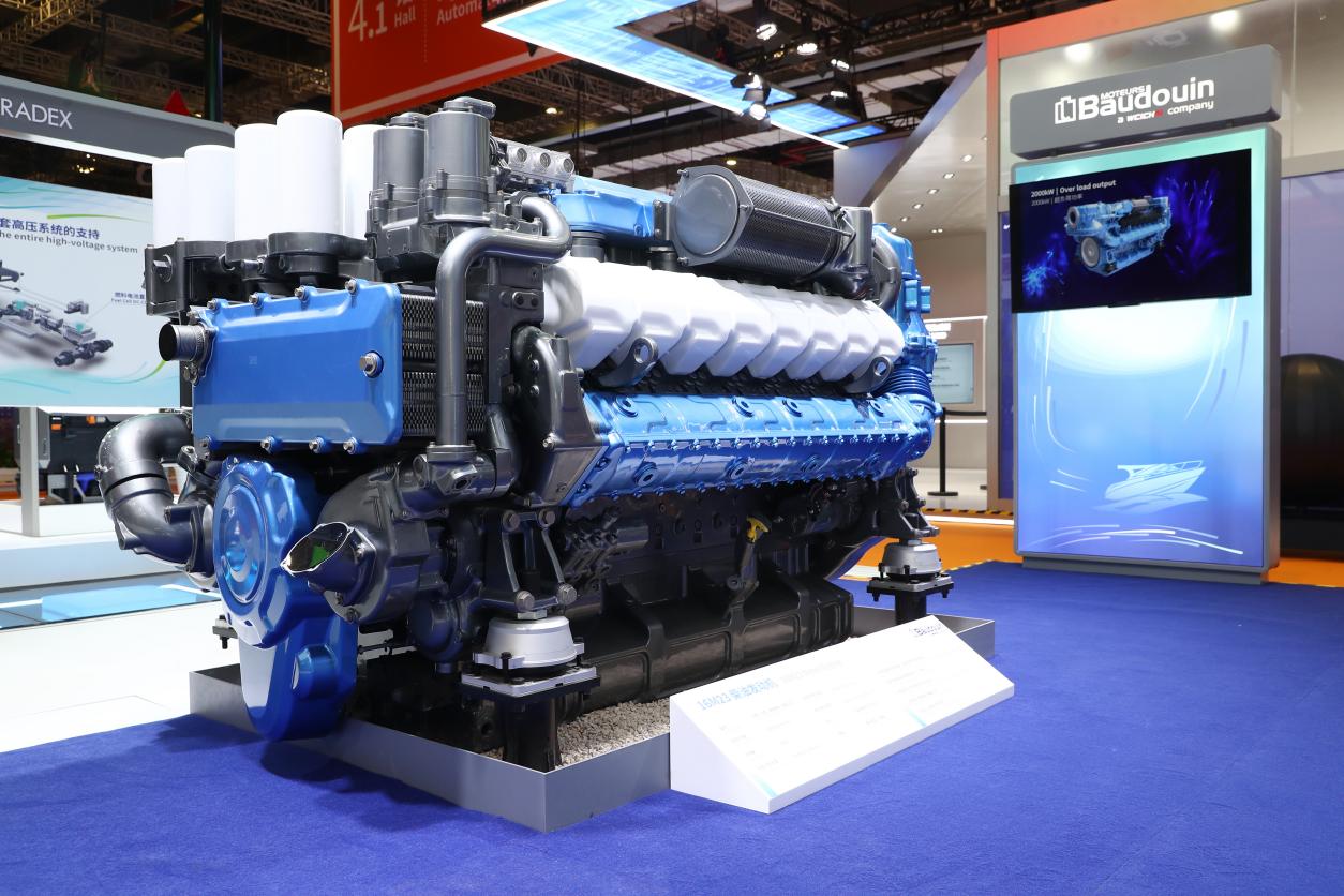 法国博杜安此次展出的全新一代16M23高端艇用动力,最大功率2000kW,采用相继增压控制技术、高压喷射技术,并通过先进仿真技术优化燃烧效率;核心零部件安全系数高,大量采用铸铝及合金材料减轻重量,排气系统的三层壁隔热技术可降低机舱辐射散热,低噪声设计更贴合船舶应用场景,广泛适用于公务船、游艇、客船等。