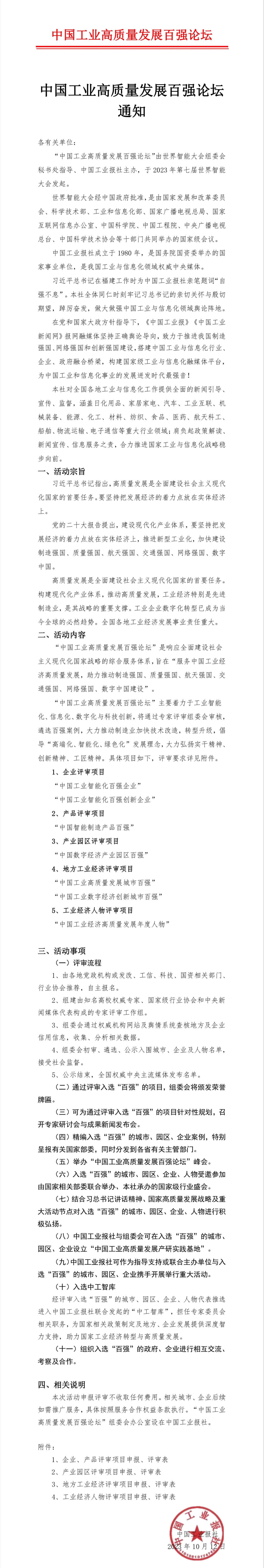 中国工业高质量发展百强论坛通知