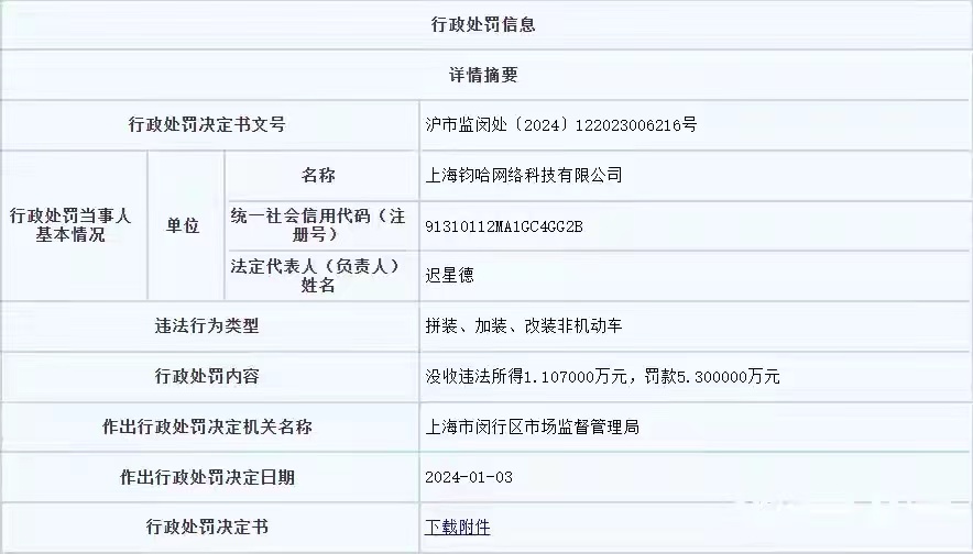 哈啰电动车不合格被罚18万