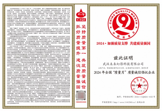 展望未来,未来幻影将继续依托母公司木仓科技强大的技术支撑与资源保障,秉承“质量为本、诚信为先”的经营理念,以更加饱满的热情和更加坚定的信念投身于质量诚信建设之中。公司将继续加大研发投入,推动技术创新和产品升级,不断提升产品的智能化水平和服务质量。同时,公司还将积极履行社会责任,与政府、行业协会及社会各界共同推动质量强国建设,为实现中华民族伟大复兴的中国梦贡献自己的力量。