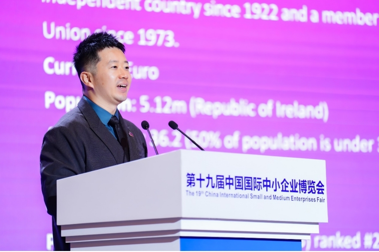 交流会中,爱尔兰投资发展局深圳办公室首席代表王磊首先就“全球发展新趋势下中爱经贸合作趋势与展望”做主旨分享。他指出,爱尔兰在以芯片、AI为首的智能科技领域拥有肥沃的“土壤”,在吸引腾讯、网易游戏等一批企业外,也希望吸引更多中小企业扎根。此外,充分的制度、金融服务,也为企业当地发展提供保障。