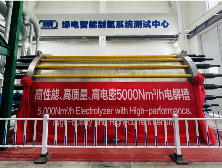 参观交流过程中,采访团亲眼见证了双良氢能产业的创新成果——世界最大标方高性能碱性电解槽。这款由双良自主研发的制氢设备不仅达到了5000Nm³/h的产氢量,还在自主研发的基础上取得了多项关键性能指标的重大突破。在90摄氏度工况运行时,双良电解槽最高电流密度可达10600A/㎡,能耗仅为4.7kW·h/Nm³H₂;在3000A/㎡电流密度下,能耗更是低至3.875kW·h/Nm³H₂。这一里程碑式的成就不仅彰显了双良在技术创新上的强大实力,还极大地推动了整个行业的技术革新与发展。