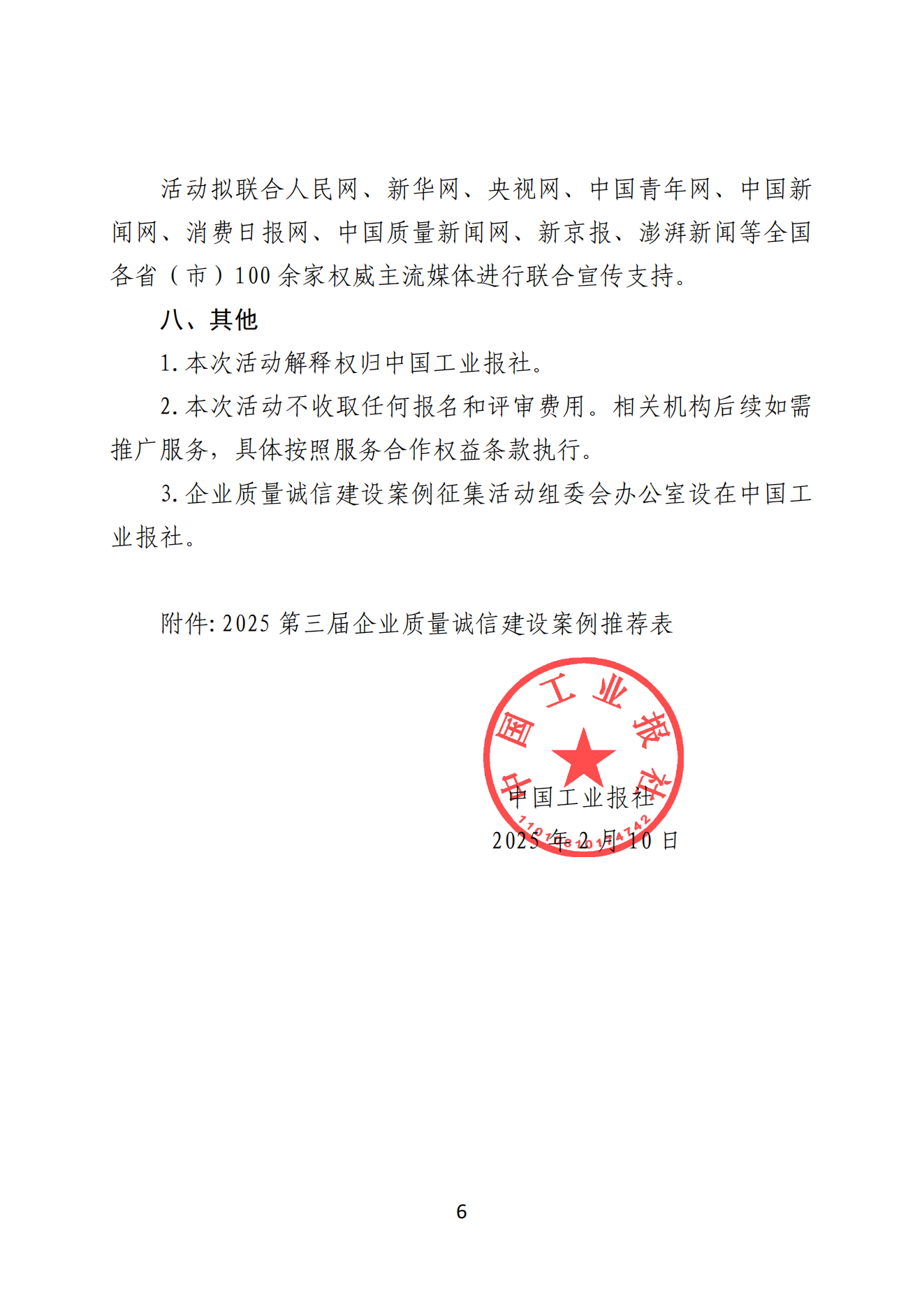 3.企业质量诚信建设案例征集活动组委会办公室设在中国工业报社。