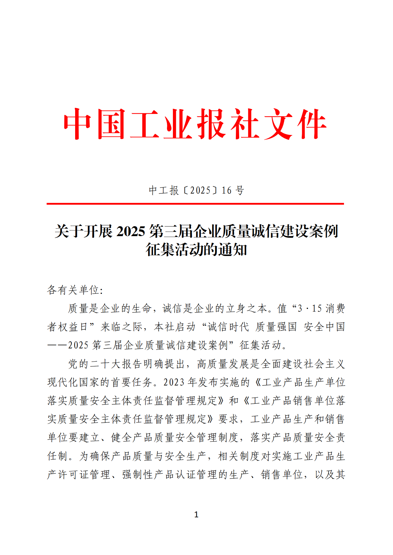 (一)2025企业质量诚信建设案例推选