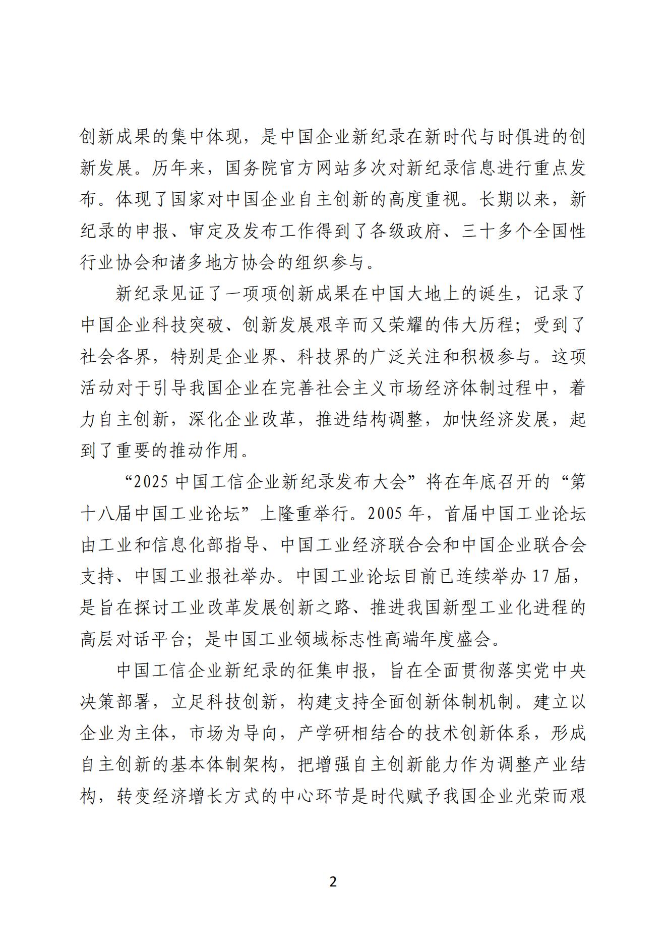 3.出品《2025年中国工信企业新纪录》报告,作为我国工信企业创新发展见证的历史性记载。特别呈报有关国家部委,同时分发到各省有关主管部门。