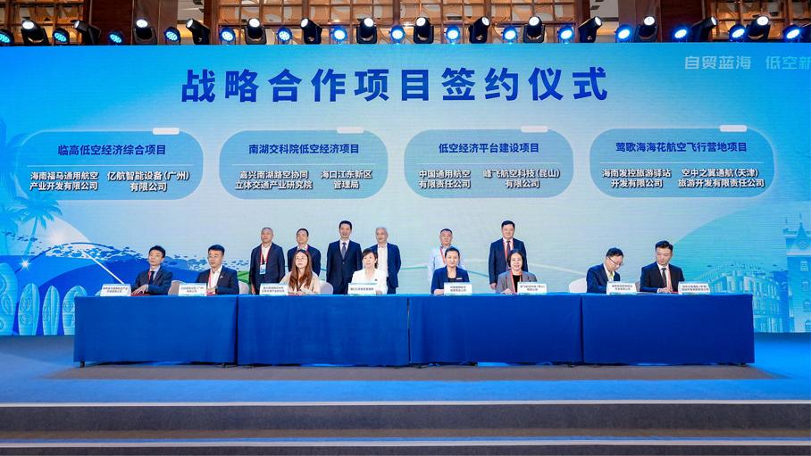 现场共计达成8个合作项目签约,涉及飞行应用、生产制造、技术研发及产业协同等多个关键领域,具体有文昌市重载无人直升机组装产线项目及无人机运输投送项目、低空跨海航线常态化项目、装备再制造及无人机国际交付中心项目、乐东海洋无人机维修保障基地、莺歌海海花航空飞行营地项目、低空经济平台建设项目、南湖交科院低空经济项目和临高低空经济孵化基地暨飞行驿站项目,为海南低空经济的多元化发展注入新动能。