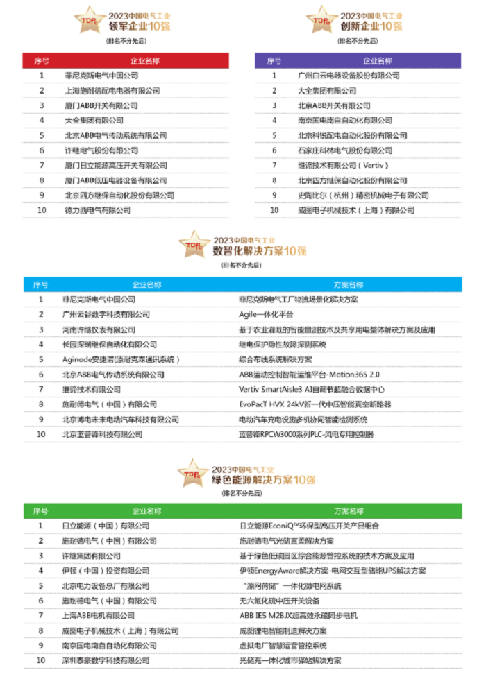 2023年11月23日,第19届中国电气工业发展高峰论坛暨“第23届中国电气工业100强研究”发布会在北京成功举办。